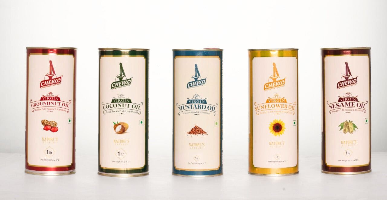 At Chekko Oils, we use an ancient 5,000-year-old method to extract oil by pressing raw materials between wooden surfaces. Our process keeps the temperature below 30°C, preserving all the nutrients and flavors. This sets us apart from refined oils, which are processed at temperatures above 200°C. Chekko Oils offer a healthier and tastier option for your cooking needs.