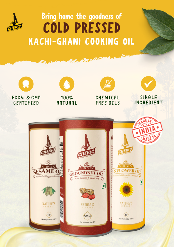 At Chekko Oils, we use an ancient 5,000-year-old method to extract oil by pressing raw materials between wooden surfaces. Our process keeps the temperature below 30°C, preserving all the nutrients and flavors. This sets us apart from refined oils, which are processed at temperatures above 200°C. Chekko Oils offer a healthier and tastier option for your cooking needs.